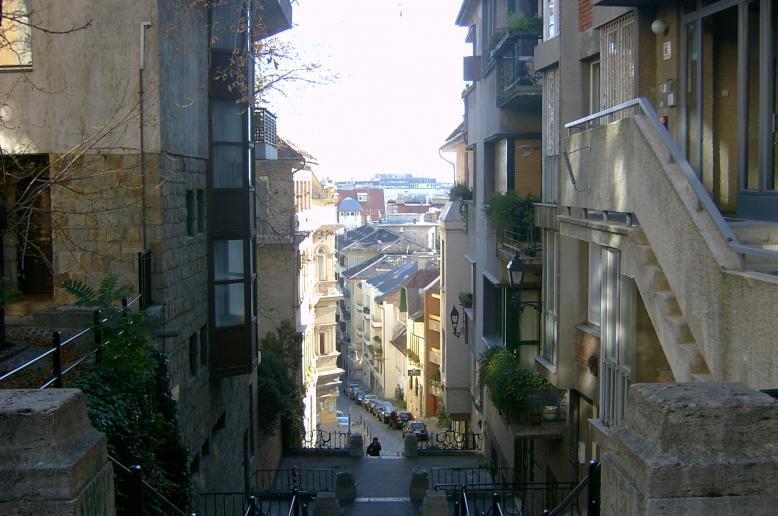 从这里从渔人堡方向走,中途会经过匈牙利总统府,城堡剧院等。游客们愿意走与之平行的SzentGyorgy路,因为在那里,对面的附近或远处的山会映入眼帘,忽隐忽现,非常梦幻。